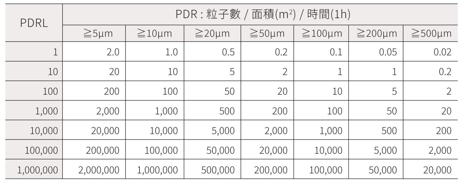 PDR=粒子数(> Dμm)/面积(1m2)/时间(1h)