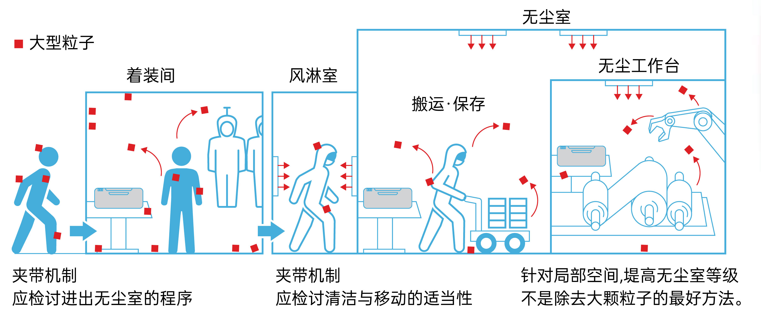 在已经检出50μm以上的大型粒子的空间里,首先应进行洁净流程的重建,后续才能有效回复清洁,